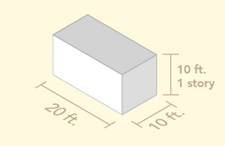 Each brick is 20 feet wide by 10 feet deep by 10 feet (or one story) tall.